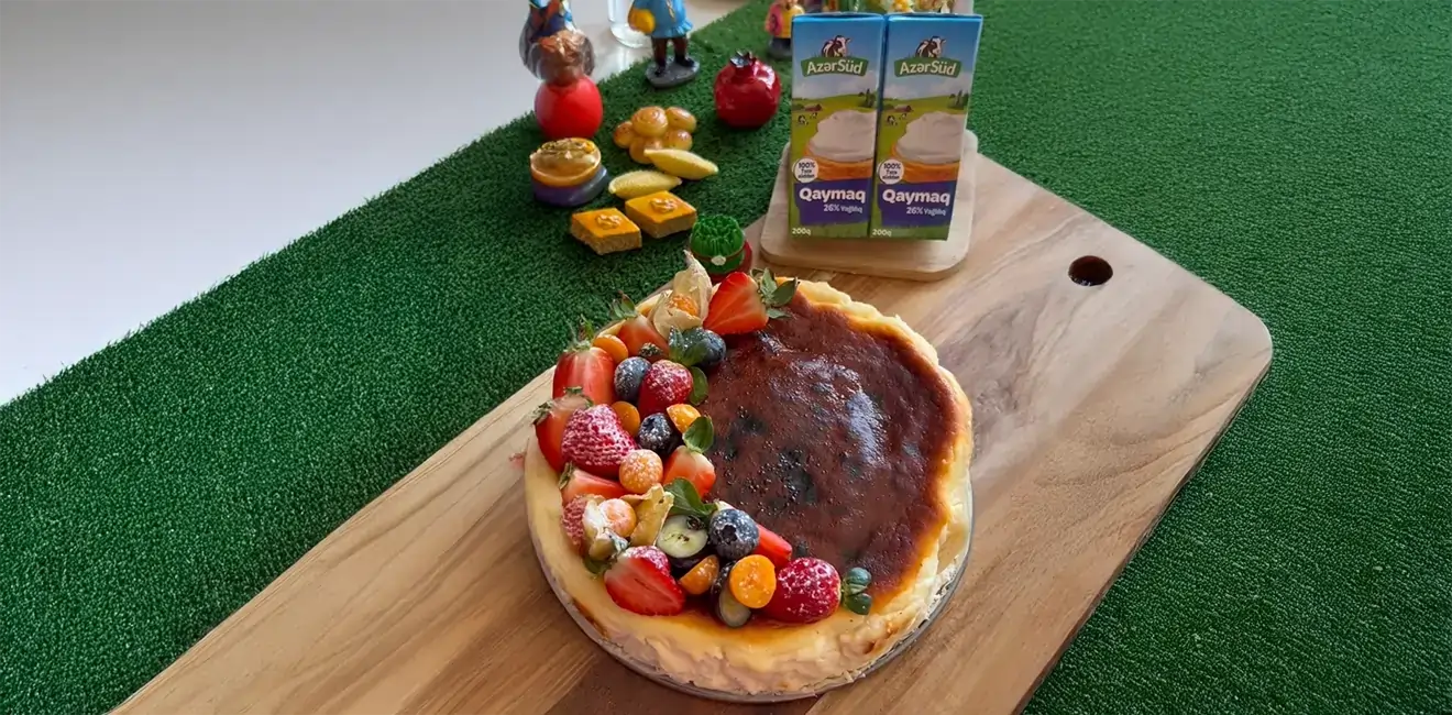 1. Bütün ərzaqların otaq temperaturunda olmasına diqqət edin. 2. Sobanı 200 dərəcəyə qədər əvvəlcədən qızdırın. 3. Cheesecake üçün istifadə edəcəyiniz qəlibi yağlı kağızla döşəyin. Kağız qəlibin kənarlarını bir qədər aşmalıdır. 4. Böyük bir qabda krem pendiri və şəkər tozunu birləşdirin. Mikserlə aşağı sürətlə çırparaq krem kimi hamar bir qarışım əldə edin. 5. Yumurtaları bir-bir əlavə edərək hər dəfə yaxşıca qarışdırın. 6. Qarışığa qaymaq və vanili əlavə edin. Mikserlə yavaşca qarışdırın ki, qarışım hamar qalsın. 7. Ələnmiş unu qarışıma əlavə edib mikserin aşağı sürəti ilə qarışdırın. Hamar və axıcı bir konsistensiya əldə etdikdə qarışım hazırdır. 8. Hazırladığınız qarışımı yağlı kağızla örtülmüş qəlibə tökün. Qarışımın səthi düz olmalıdır. 9. Cheesecake-i əvvəlcədən qızdırılmış sobada 200 dərəcədə 27 dəqiqə bişirin. Cheesecake-in üstü qızılı-qəhvəyi rəng almalı, amma ortası bir qədər titrək qalmalıdır. 10. Cheesecake sobadan çıxdıqdan sonra tam soyumasını gözləyin. Daha sonra onu ən azı 4-5 saat, ideal halda bir gecəlik soyuducuda saxlayın. 11. Cheesecake-i qəlibdən çıxarın, dilimlərə ayırın və servis edin.