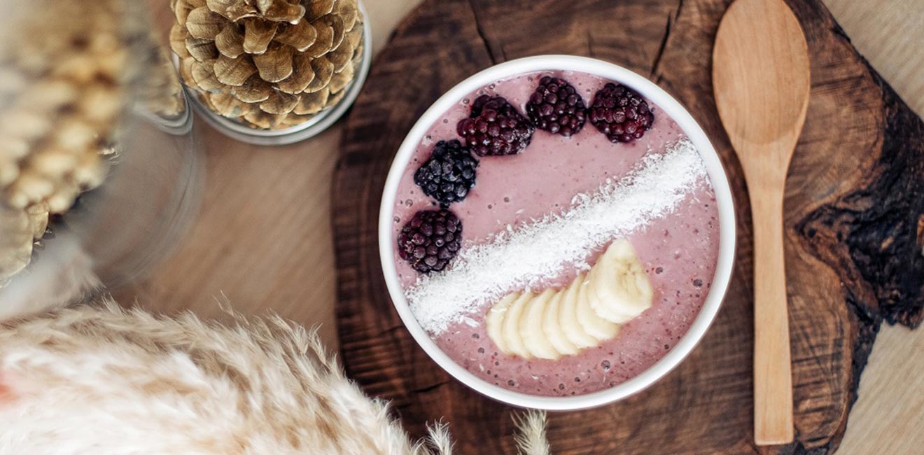 Banan, moruq və "AzərSüd"ü iri dişli blenderdən keçirin. Üzərini çia toxumu, kokos və nar ilə bəzəyin.